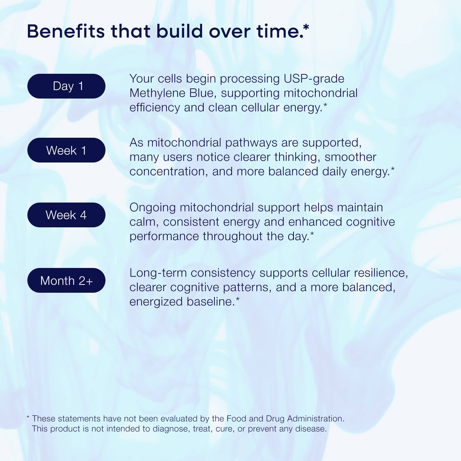 Methylene Blue functions as a mitochondrial electron courier—supporting energy production where mental performance begins.